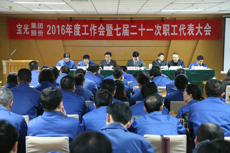 2月3日上午,寶光集團(股份)2016年工作會議暨七屆二十一次職工代表大會在科技大樓二樓大會議室圓滿召開。集團(股份)公司領導李軍望、付宗喜、岳永學、張軍、胡唯、袁軍為、王荃和全體中層干部、職工代表共150余人參加了會議。