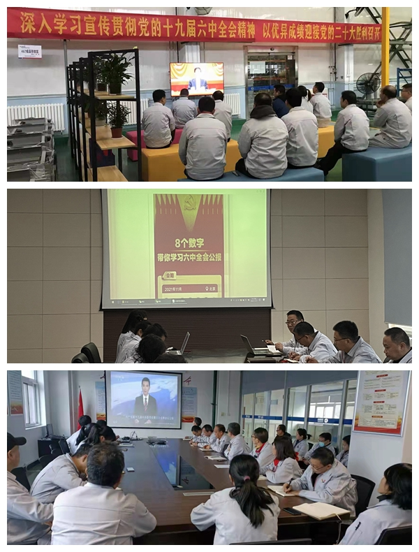 公司黨委要求各黨支部緊抓契機(jī)、提高認(rèn)識(shí),迅速行動(dòng)起來(lái),進(jìn)一步增強(qiáng)學(xué)習(xí)貫徹十九屆六中全會(huì)精神的自覺性和主動(dòng)性,以迅速及時(shí)、扎實(shí)有效的舉措,推動(dòng)形成學(xué)習(xí)貫徹黨的十九屆六中全會(huì)精神的熱潮;要求黨委班子成員、各黨支部書記以及及黨委部門負(fù)責(zé)人要帶頭學(xué)習(xí)、并撰寫學(xué)習(xí)心得;要求各黨支部精心組織,通過三會(huì)一課、班前會(huì)、晨會(huì)等多種形式,深入學(xué)習(xí)貫徹黨的十九屆六中全會(huì)精神會(huì)議,推動(dòng)全會(huì)精神進(jìn)車間、進(jìn)班組、進(jìn)基層,領(lǐng)會(huì)全會(huì)精神、激發(fā)干事創(chuàng)業(yè)激情。