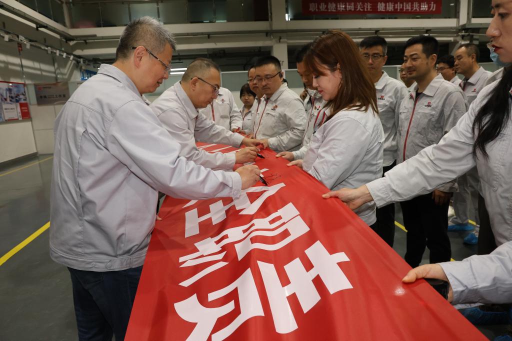 啟動(dòng)儀式上,滅弧室產(chǎn)品制造部負(fù)責(zé)人帶領(lǐng)全員進(jìn)行了安全宣誓并在紅幅簽名。希望通過(guò)一系列的安全月活動(dòng),使全體員工充分認(rèn)識(shí)到安全生產(chǎn)工作的重要性,確保公司安全生產(chǎn)形勢(shì)的穩(wěn)定和提高。李毅作重要講話(huà),他指出,要深入宣傳貫徹黨的二十大精神和習(xí)近平總書(shū)記關(guān)于安全生產(chǎn)重要論述,認(rèn)真落實(shí)黨中央、國(guó)務(wù)院決策部署,圍繞“人人講安全、個(gè)個(gè)會(huì)應(yīng)急”主題,突出寶光股份安全文化培育,推動(dòng)樹(shù)牢安全發(fā)展理念,落實(shí)安全生產(chǎn)責(zé)任,深化重大事故隱患專(zhuān)項(xiàng)排查整治,有效防范化解重大安全風(fēng)險(xiǎn),堅(jiān)決遏制重特大事故,以高水平安全保障高質(zhì)量發(fā)展。