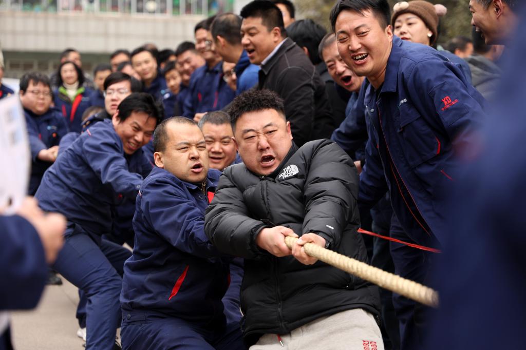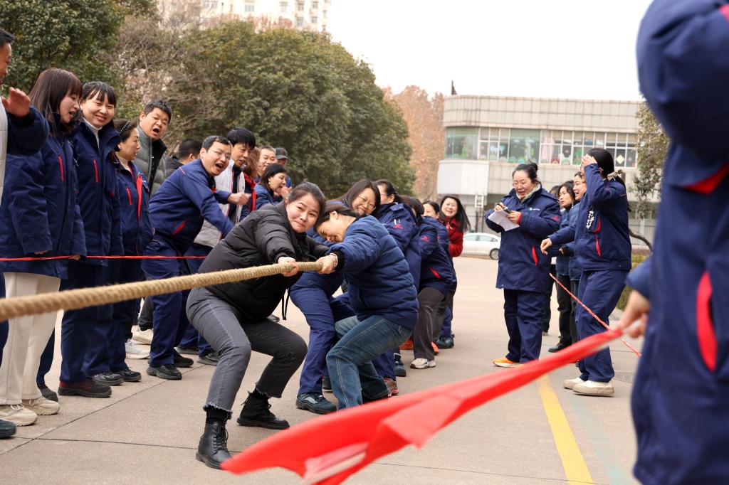 力拔千鈞展豪情,繩牽眾志啟新程。此次拔河比賽分為男子組和女子組。比賽現場,各個隊伍都嚴陣以待,摩拳擦掌,躍躍欲試,眼神中透露出堅定的決心和志在必得的信念。隨著裁判的一聲哨響,比賽正式拉開帷幕。剎那間,雙方隊員爆發出驚人的力量,雙手緊緊拽住繩子,身體拼命后仰,迸發出無盡能量。繩子中間的紅色標記在兩隊之間來回移動,每一次小小的偏移都牽動著場內外的心。場外啦啦隊和觀眾扯著嗓子喊著號子為自己的隊員加油助威,加油聲、吶喊聲、歡笑聲此起彼伏,熱鬧非凡。